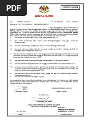 Contoh Surat Akujanji Usm - Contoh surat aku janji menyiapkan kerja.